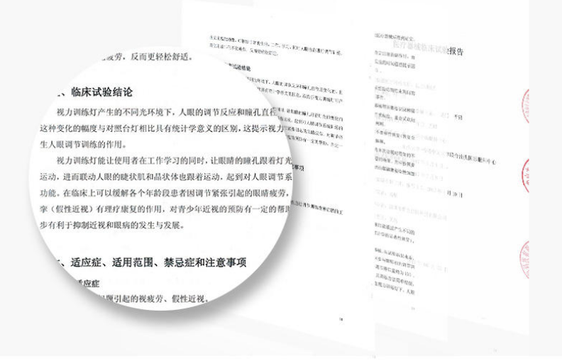 在它的医疗器械注册申报材料中明确规定适用范围为:对调节问题引起的视疲劳、假性近视患者、希望通过调节训练改善症状的正常人起理疗康复作用,得到了眼科专家的一致好评!