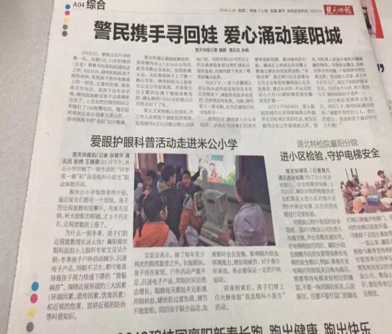 襄阳爱尔眼科医院自进驻襄阳以来,在坚持自身发展的同时,热心社会公益,心系贫困弱势群体,先后多次联合红十字会、慈善总会、科协、教育局、关工委等部门,组织医护工作者开展义诊活动,免费为贫困白内障患者实施免费复明手术,使患者摆脱“因病致贫”“因病返贫”等困境,帮助大批贫困眼疾患者重拾光明,在防盲治盲方面取得了一定成效,获得了良好的社会反响。