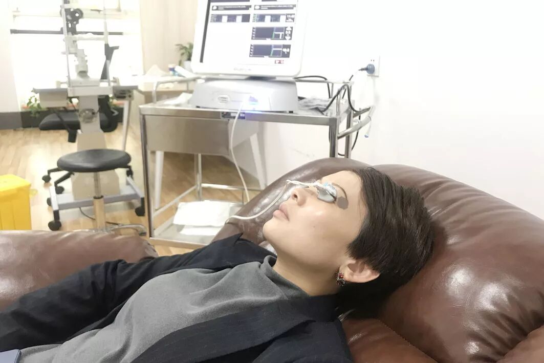 在进口的仪器中注入特定药物,进行15~20分钟的熏蒸,补充眼部水分,身心放松的同时眼部也得到充分舒缓,有效地缓解了眼睛干涩、刺痒、疲劳等不适的症状。
